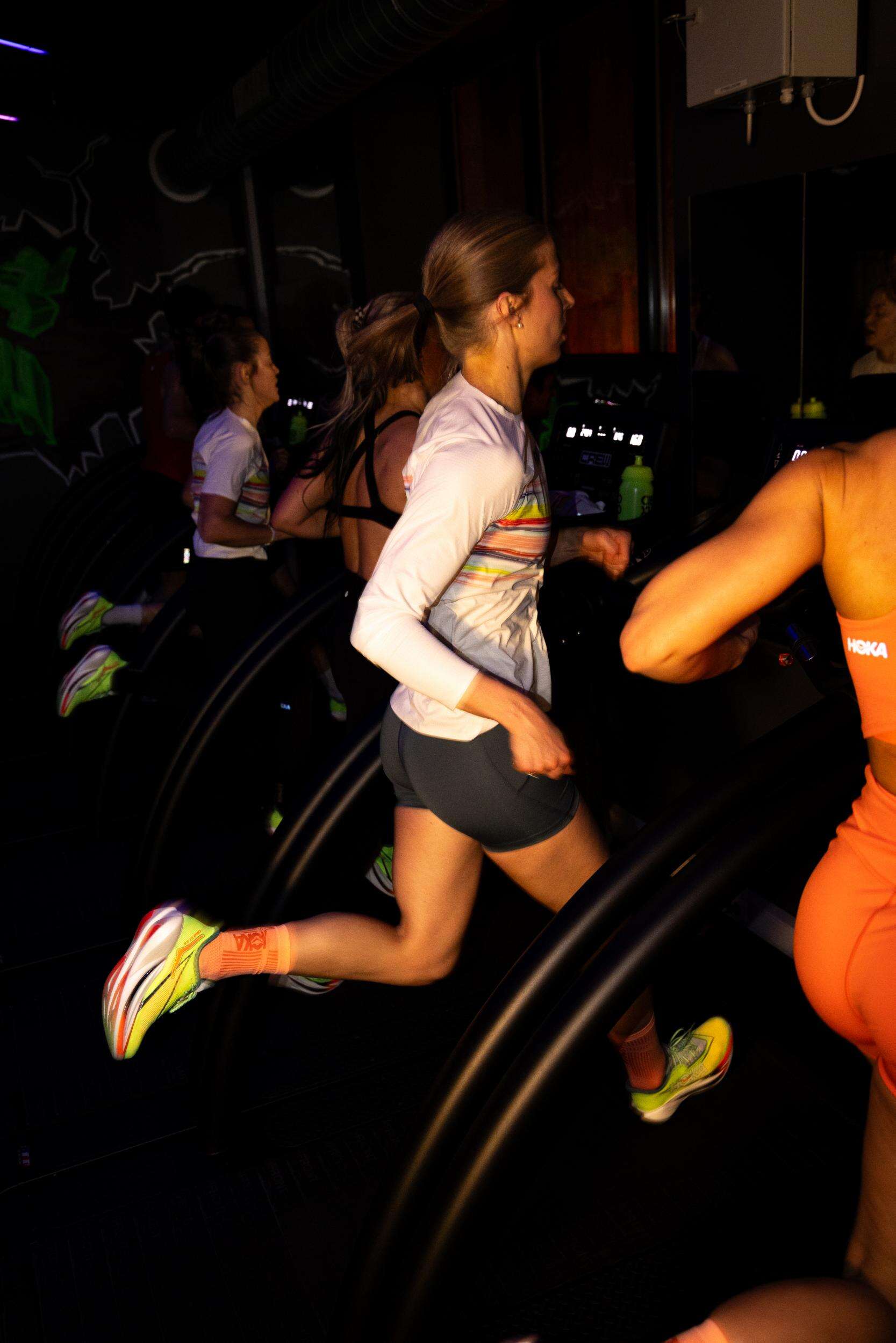 Etter mingling og en kort gjennomgang av detaljene var det klart for den virkelige testen. Treningsøkten ble ledet av Hoka-ambassadør Amanda Nilsson, som hadde satt sammen et perfekt opplegg for at deltakerne skulle få kjenne på Cielo X1 3.0 i ulike hastigheter.