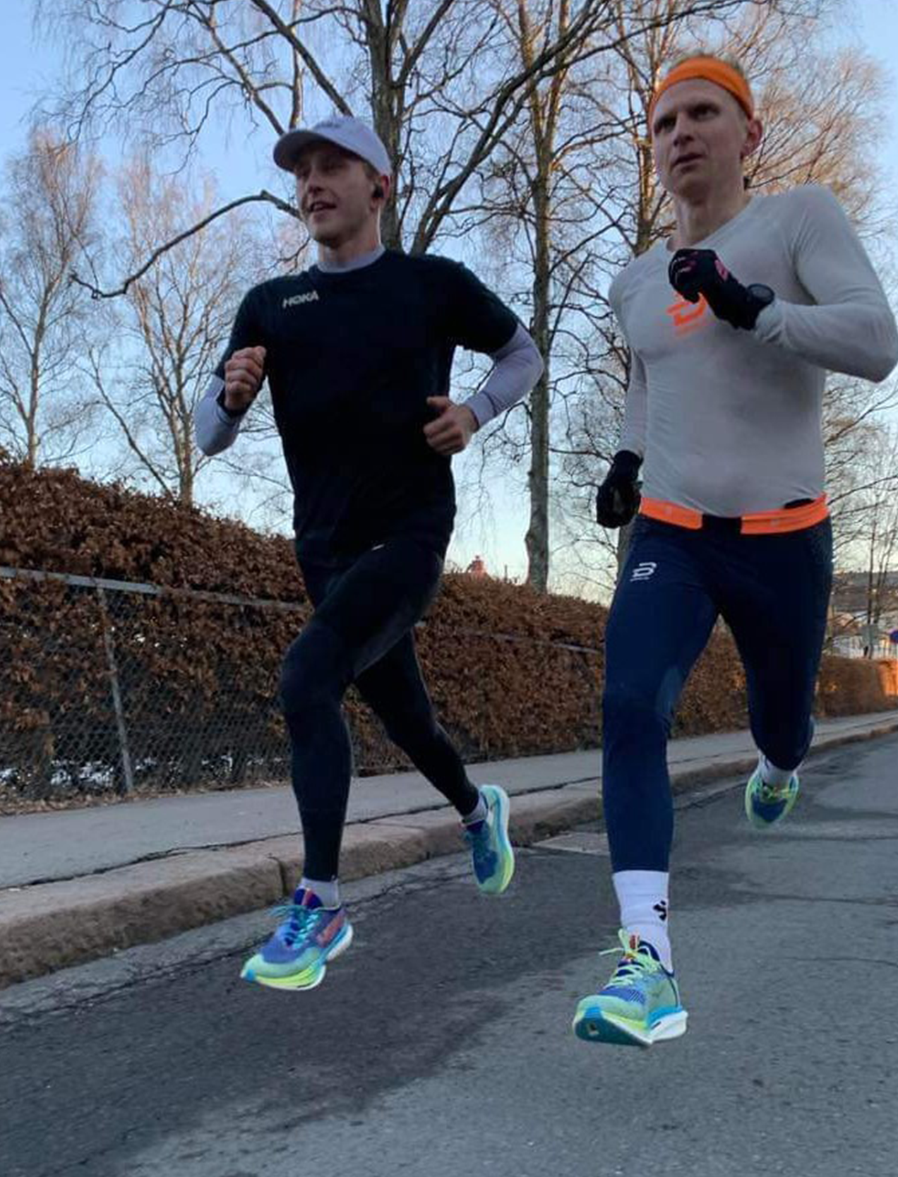 – Synes de gir en ekstrem sprett og respons i steget. Liker også passformen på skoen, da den ikke er for «stor og klumpete», selv om den er bygd opp og har bra demping. Har brukt skoen på langintervaller, blant annet på 5 x 6 min og 10 x 1000 meter, og synes de kommer best til sin rett på asfalt og mølle.